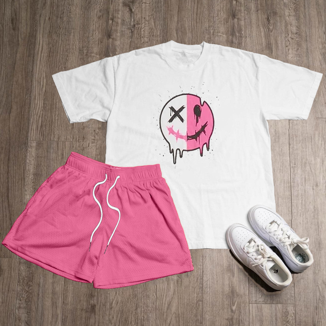 Funny Expression Print T-Shirt Shorts Two-Piece Set