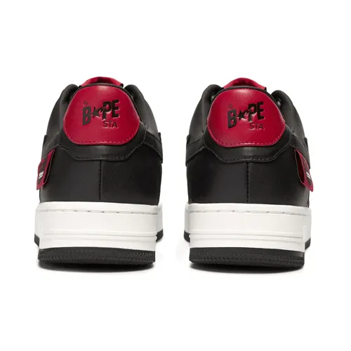 They feature a black base with white accents. The heel, and the insole of the shoe. The shoes also have a Mr. Ape star on the side of the shoe, which is a nod to BAPE’s signature star design.