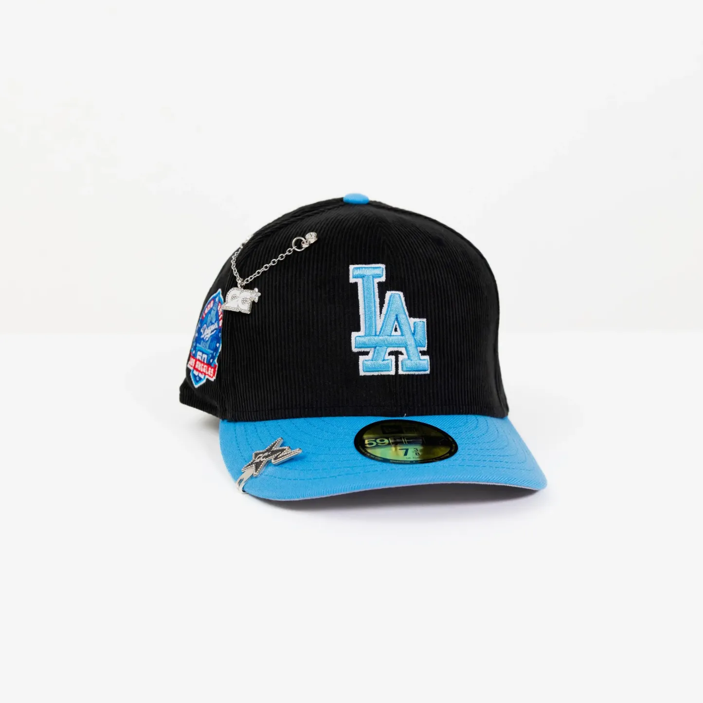 NEW ERA 59FIFTY CORDUROY/ ICY BLUE LOS ANGELES DODGERS W/ 60TH ANNIVERSARY SIDE PATCH