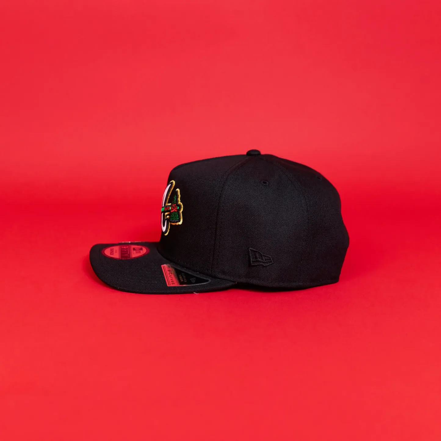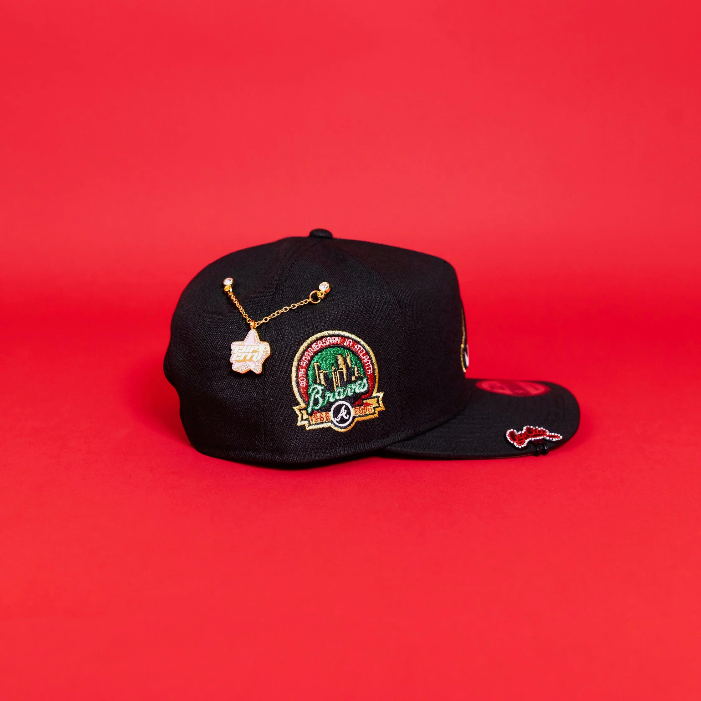 NEW ERA EXCLUSIVE 9FIFTY A-FRAME BLACK ATLANTA BRAVES SNAPBACK W/ 40TH ANNIVERSARY SIDE PATCH