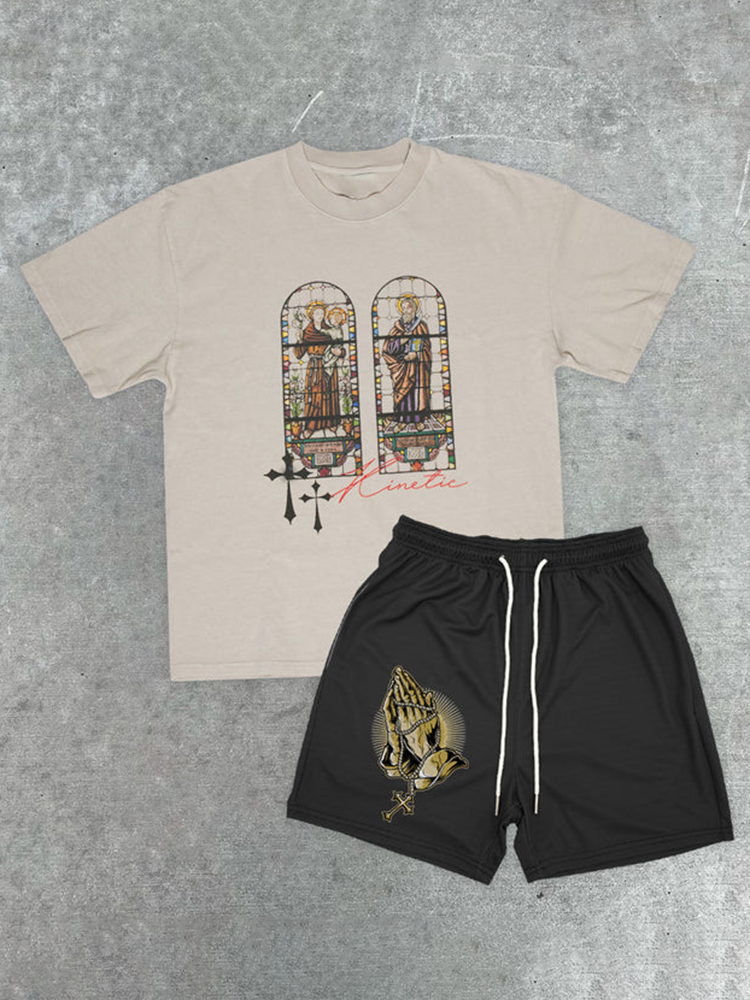 Unisex Vintage Faith Printed T-Shirt And Shorts Set