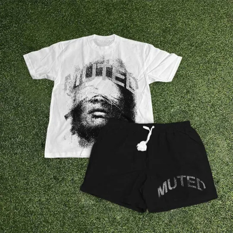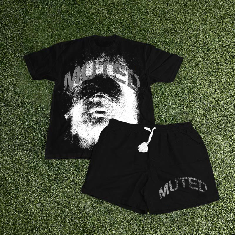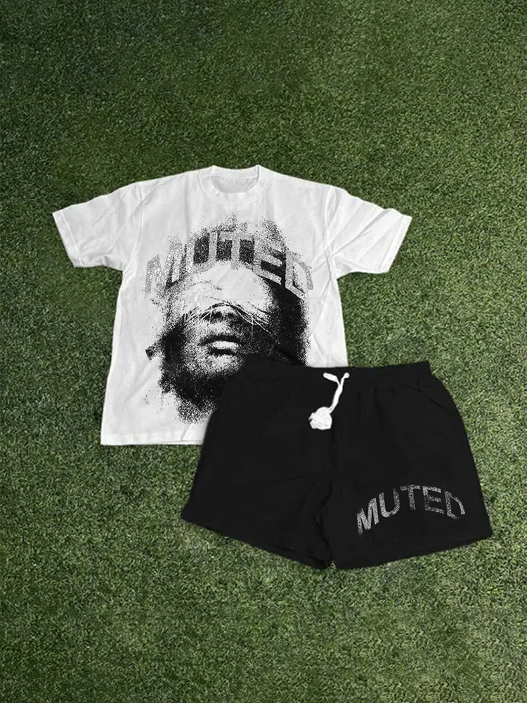 Vintage Muted Graphic T-Shirt And Shorts Co-Ord T-Shirt Set
